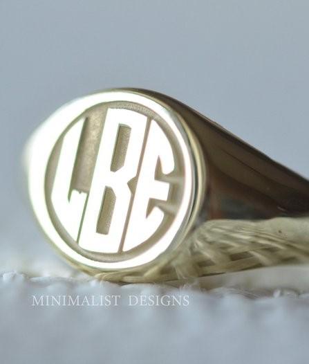 Solid Gold Personalized Heart Shaped Monogram Signet Ring